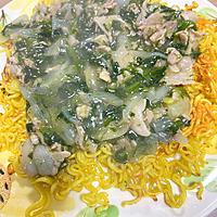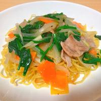 ほうれん草の代わりに小松菜を使って、中華麺の代わりにインスタントラーメン(袋麺)の乾麺を茹でてから同じように作りましたが、とても美味しくできました!