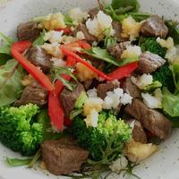 ドレッシングに醤油を少し足しました。肉も野菜もたっぷり。美味しくて大満足。