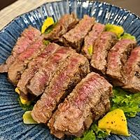 - 1 牛肉の両面にハーブソルト、黒こしょうをします。
