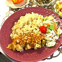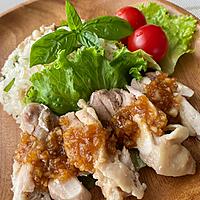 炊飯器から広がるジンジャーとチキンの香りに食欲そそられます。鶏もも肉はほろほろと柔らかく、お米は鶏の旨味をたっぷり吸って風味豊か。特製タレは生姜とにんにくが効いたアジアンテイストで、玉ねぎのシャキシャキ食感も楽しめます。簡単なのに本格的な味わいで、バジルやパクチーを添えればよりエスニックに。大人も子供も大満足の一品です。