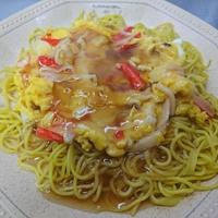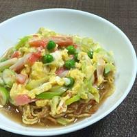 ふわふわ卵の天津麺はいかがでしょうか。カニカマと長ねぎの旨味を卵に合わせてボリューム満点の一皿に仕上げました。ふわふわの卵ととろっとしたあんが中華麺によく絡み、とてもおいしいです。ぜひお試しください。