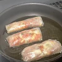 ライスペーパーを水でぬらすので水分かわ油と混ざって揚げる時にめちゃくちゃはねて怖かったです。