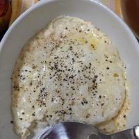 材料を混ぜてレンチンするだけの簡単調理なのに、チーズと牛乳がとろけ合い、まるでホワイトソースのようなクリーミーな仕上がりに。仕上げのナツメグは少量でアクセントに、たっぷりの黒コショウで大人の味わいに。最後にのせる卵黄と絡めて食べると、熱々でとろけるような食感を楽しめます。ベーコンや玉ねぎ、キノコを加えたり、オートミールでアレンジしたりと、応用も効く一品です。
