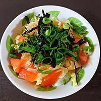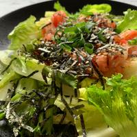 - 5 お皿に2と4を盛り付けて、のりと小ねぎをかけてできあがりです。