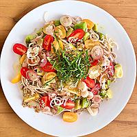 「ミニトマトとアボカドのサラダ蕎麦」の作り方を簡単で分かりやすいレシピ動画で紹介しています。