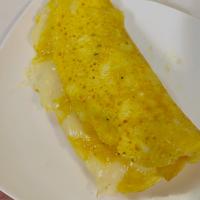 ふわっふわのオムレツ!はんぺんいいですね!チーズはスライスチーズ半分で。なにもつけないでたべたけどおいしかったです!