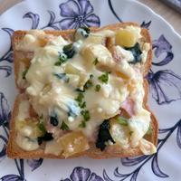 クリームソースと相性の良いじゃがいもとほうれん草を使ってクリームオープンサンドを作りました。クリームソースには隠し味の中濃ソースを使ってコクをだし、チーズを載せて焼くとボリューミーで美味しくなるのでオススメです。簡単なので、是非作ってみてください。