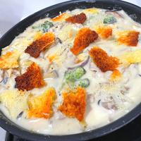 ・オーブンを使わずにフライパンで仕上がるグラタンのため、手順5の煮込み時間が通常より長くなっています。 ・牛乳は、加熱しすぎると分離する可能性がありますので、火加減にご注意ください。 ・ブロッコリーは、れんこんで代用してもおいしくお作りいただけます。その場合、繊維に沿って細切りにすると食感がアクセントになっておすすめです。 ・お好みで、仕上げに粗挽き黒こしょうをかけるのもおすすめです。