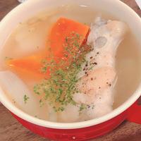 手羽元からダシが出るので旨味がたっぷりのポトフです。シンプルなスープですが、手羽元の食べ応えがあるので夕飯のメインにもなります。黒こしょうのトッピングがアクセントなので好きな方は多めにかけてください。ぜひ作ってみてくださいね。