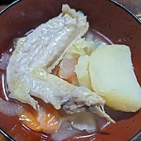 ローリエ・オリーブオイル・じゃがいも無かったですが、手羽元10本・キャベツと人参と玉ねぎをたくさん+水1000ml・コンソメ小さじ5でしっかり味、野菜が甘くてお肉もトロトロ柔らかく幸せでしたのでリピ▷▷