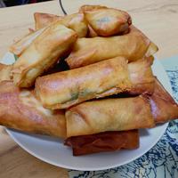 水溶き薄力粉は、薄力粉1、水2の割合で作ってください。 揚げた際に具材がはみ出ないように手順2でしっかりと巻いてください。
