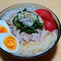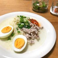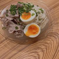 さっぱり美味しいこれからの時期にぴったりのそうめんの食べ方。お肉の下味なくてもスープがしっかり目の味なので問題なく美味しかったです。冷ます時間短縮のため、少量のお湯で鶏がらスープをとかしたら、あとは冷水でスープ作りを完了させました。ごま油は半量、塩と鶏ガラも少し減らして減塩スープでまた作ります。