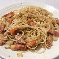 - 1 玉ねぎ、ニンニクはみじん切りにし、ベーコンは5mm幅、トマトは角切りにします。