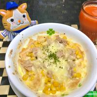 パンに牛乳液がしっとり染み込んでふわふわな食感が特徴的なグラタン。ツナとコーンの定番の組み合わせに、ミニトマトやブロッコリー、ベーコンなどお好みの具材をアレンジして楽しめます。チーズがとろ〜り溶けて香ばしい仕上がりに。朝食やランチにぴったりの簡単レシピで、パンの浸し加減を調整すれば、サクッとした食感も楽しめます。子供と一緒に作れる手軽さも魅力です。