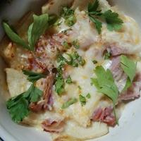 朝食におすすめ 食パンを使って簡単にできるグラタンです。サラダと合わせればおしゃれな朝食になりますよ。具材もお家にあるハムや卵をいれていただいても美味しく召し上がれます。オリジナルのパングラタンを作ってみてくださいね。