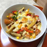 - 3 1、コーンの水煮、ツナ油漬け、ピザ用チーズをのせ、オーブントースターで5分ほど焼きます。