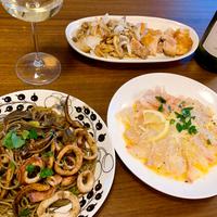 - 準備 イカをさばいて墨袋を取り出しておきます。 お湯を沸かしたら塩をいれ、パスタをお好みの硬さに茹でます。