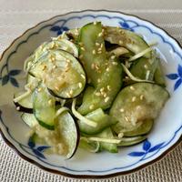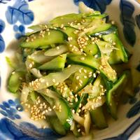 - 1 きゅうりは縦半分に切り、斜め薄切りにします。