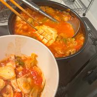 めちゃくちゃ旨くて、大好きな鍋です😍辛さが苦手な人でもトマトジュースでまろやかなのでいけるのでは?!