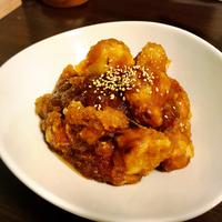 - 2 1に片栗粉を入れて全体的に絡ませ160℃の油で表面カリっとなるまで揚げます。