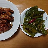 ピーマンは手で裂いて。生姜すりおろし、鷹の爪。