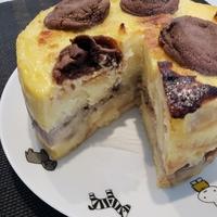 パンの耳あるときにいつも半量で作ってます。バナナ小2本はすべて混ぜこみココアクッキーの代わりにリッツを使用。今回は上にカントリーマームをくずして散らしました。簡単に出来て甘すぎずとても美味しいです🎶