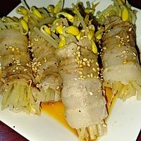 簡単ですが…豆もやしを綺麗に並べるのが大変だったけども美味しいから又作りたいと思います。