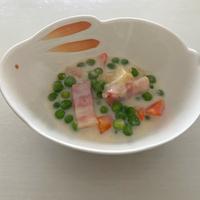 牛乳は、沸騰させると分離する可能性がありますので、火加減にご注意ください。 塩加減は、お好みで調整してください。 煮込む時は焦がさないように、かき混ぜながら仕上げてください。 グリーンピースは冷凍のものでも代用いただけます。