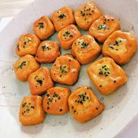 通常さつまいもを使って作るスイートポテトを、かぼちゃで作ったスイートパンプキンです。ころんとしたキューブ型のシルエットも可愛いらしく、お子さまや女子ウケ間違いなし!おやつやお茶菓子にもぴったりです。ぜひお試しくださいね。