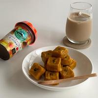 キューブの表面は焼き色がつきカリッとしておりますが、中はスイートポテトのようなしっとりとした食感になっております。ぜひ試してみてくださいね。美味しくできますように。
