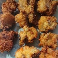 玉葱、椎茸、ピーマンも揚げました〜野菜も美味しい✨