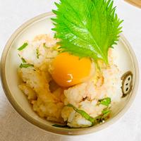 - 4 お茶碗に盛り、2を添え、卵を落として、食べる直前にしょうゆをかけて完成です。
