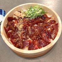半額だった鯵とブリを使用。ご飯は酢飯にはせずすり胡麻を混ぜました。タレに刻み生姜とおろしにんにくを加え、パックの海藻も一緒に漬けに。いつかカツオで本場のてこね寿司を作ってみたいです♪♪