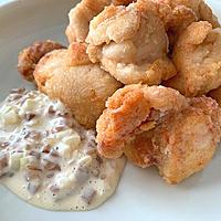 二度揚げがポイントで、中はジューシー、外はカリッとした理想的な食感を実現できます。鶏肉は50gの大きめにカットすることで、より柔らかな仕上がりに。付け合わせの奈良漬けタルタルも絶品で、しば漬けや野沢菜で代用しても美味しく作れます。にんにくをたっぷり効かせた本格的な味わいで、唐揚げ粉を使わなくても専門店のような美味しさを家庭で実現できる人気レシピです。