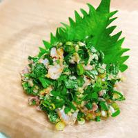 - 1 小ねぎは小口切りにします。大葉は軸を切り落とし、粗みじん切りにします。