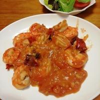 最後の塩、コショウを忘れて慌ててお皿の上からかけました(笑)海老とタコで作ったけど、おいしかったです。