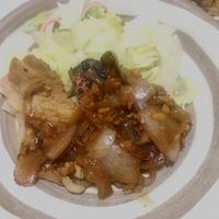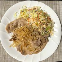 - 5 中火で熱したフライパンにサラダ油をひき、1を入れて炒めます。玉ねぎがしんなりしたら4の豚ロースを入れて、火が通るまでさらに5分程炒めます。