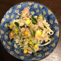 ハム無し、コーン追加でつくりました。切り干し大根に煮物以外の調理法があったなんて!簡単でおいしくて箸が進みました。こどももおかわりするくらい気に入ったようです。またリピします!