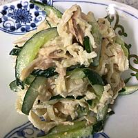 切り干し大根のシャキシャキとした歯ごたえが楽しい、和風食材をフレンチ風にアレンジした斬新なサラダです。ツナやハムを加えることで味わいが深まり、コーンやキャベツを加えてもアレンジ自在。おつまみにも最高の一品として楽しめます。切り干し大根は乾物15g程度が適量で、水で戻してしっかり絞るのがポイント。お店のような味わいながら簡単に作れると好評です。