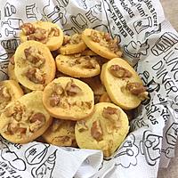 くるみクッキーのご紹介です。いつものクッキー生地にくるみを入れることで香ばしい風味が楽しめるクッキーに仕上ました。くるみの代わりにアーモンドやピーナッツでもおいしくいただけますよ。簡単に作れますので、ぜひ、お試しくださいね。