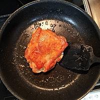 - 2 フライパンにサラダ油を熱し、強火で1を皮目から焼きます。焼き色がついたら裏返し、白ワインを加えて蓋をし、弱火で5分程蒸し焼きにします。