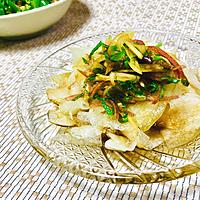 - 2 1をスライサーでスライスし、塩で軽く揉み、5分ほど置いたら、水気を切ります。