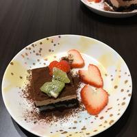 - 7 6を4~5cm角に切り分けてココアパウダーを振り、ミントを添えて完成です。