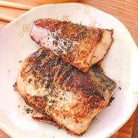 塩サバと違い水分が抜けて無いので、塩をやや強めに振って水分を出してから、しっかりと水分を拭き取り焼きました。