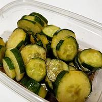 - 2 ジッパー付き保存袋に1と(A)を入れて、きゅうりがしんなりするまでよく揉みます。