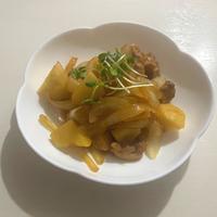 玉ねぎとじゃがいもがトロトロに煮込まれ、鶏肉の旨味がたっぷり染み出した優しい味わいの一品です。出汁を使わなくても野菜と鶏肉の旨味だけで十分な美味しさが引き出されます。お酢を加えることで、さっぱりとした後味に仕上がり、暑い時期でも食べやすいのが特徴。水加減に気をつけながら、じゃがいもの数を増やしたり、お好みの野菜を加えてアレンジも楽しめます。