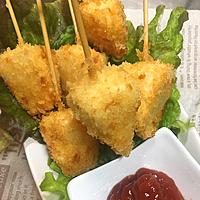 おしゃれな居酒屋でよく見かけるカマンベールチーズフライ。意外と簡単にお家でもできるんです!ぜひお試しください。お好みでケチャップやマヨネーズ、一味などのフレーバーを足してお召し上がりください。ピックや竹串に刺すと、可愛らしく、食べやすいです。