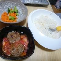 離乳食9〜11ヶ月ごろ(後期)から始められる、ハンバーグのトマト煮はいかがでしょうか。ハンバーグを昆布かつおだしとトマトで煮込みました。粘りがでるまでよく混ぜることで、ふっくら仕上がります。ぜひ、お試し下さい。