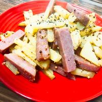 ポークランチョンミートとポテトの粒マスタード炒め レシピ・作り方