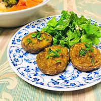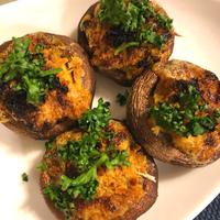 - 4 アルミホイルを敷いた天板に1のかさの部分を並べ、3を入れてパン粉をかけてオーブントースターで10分程焼きます。